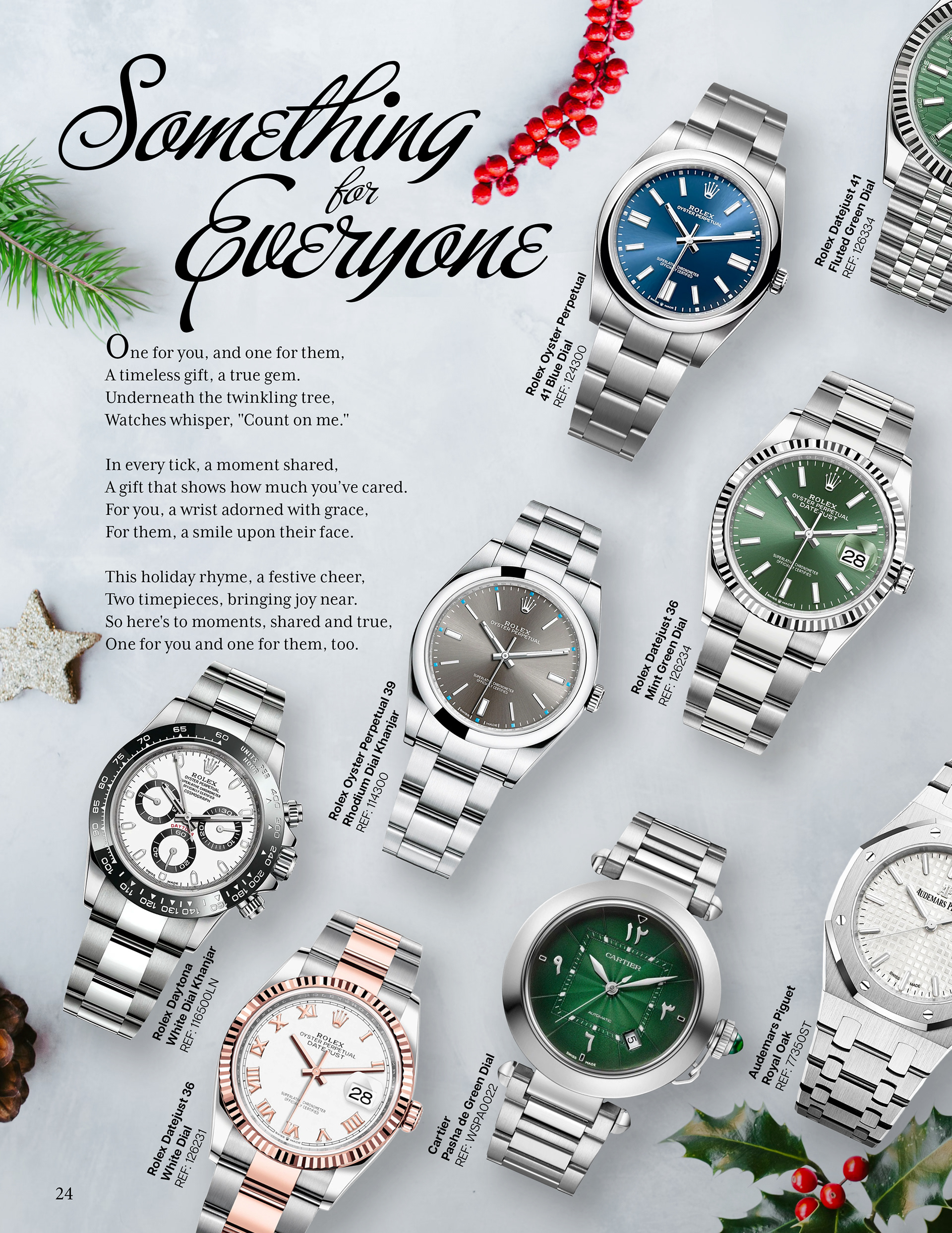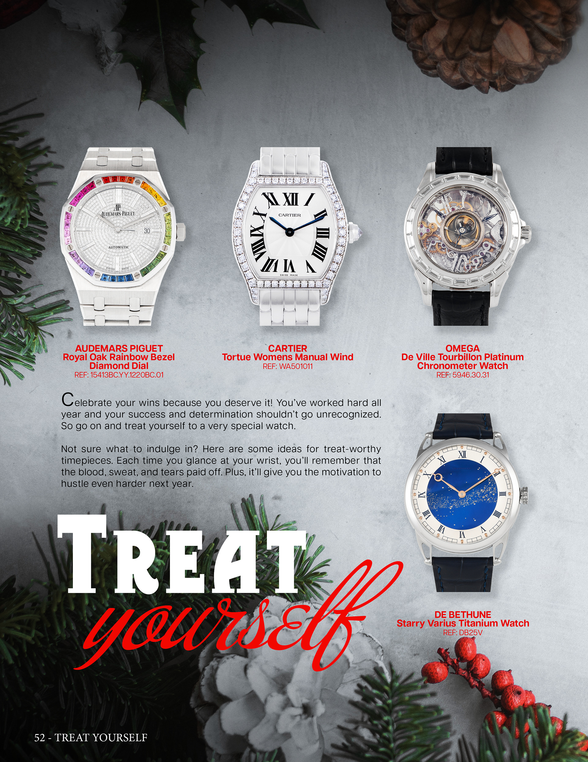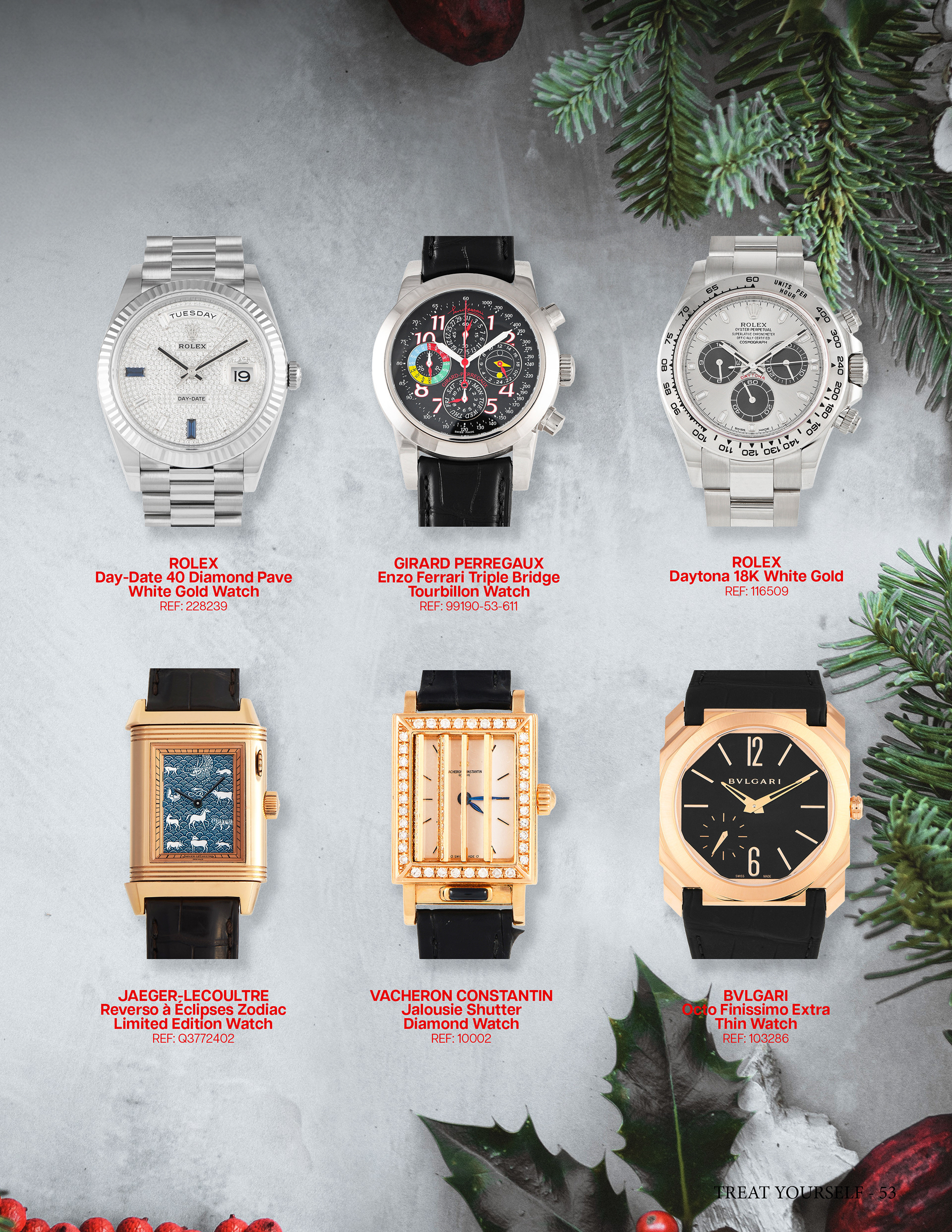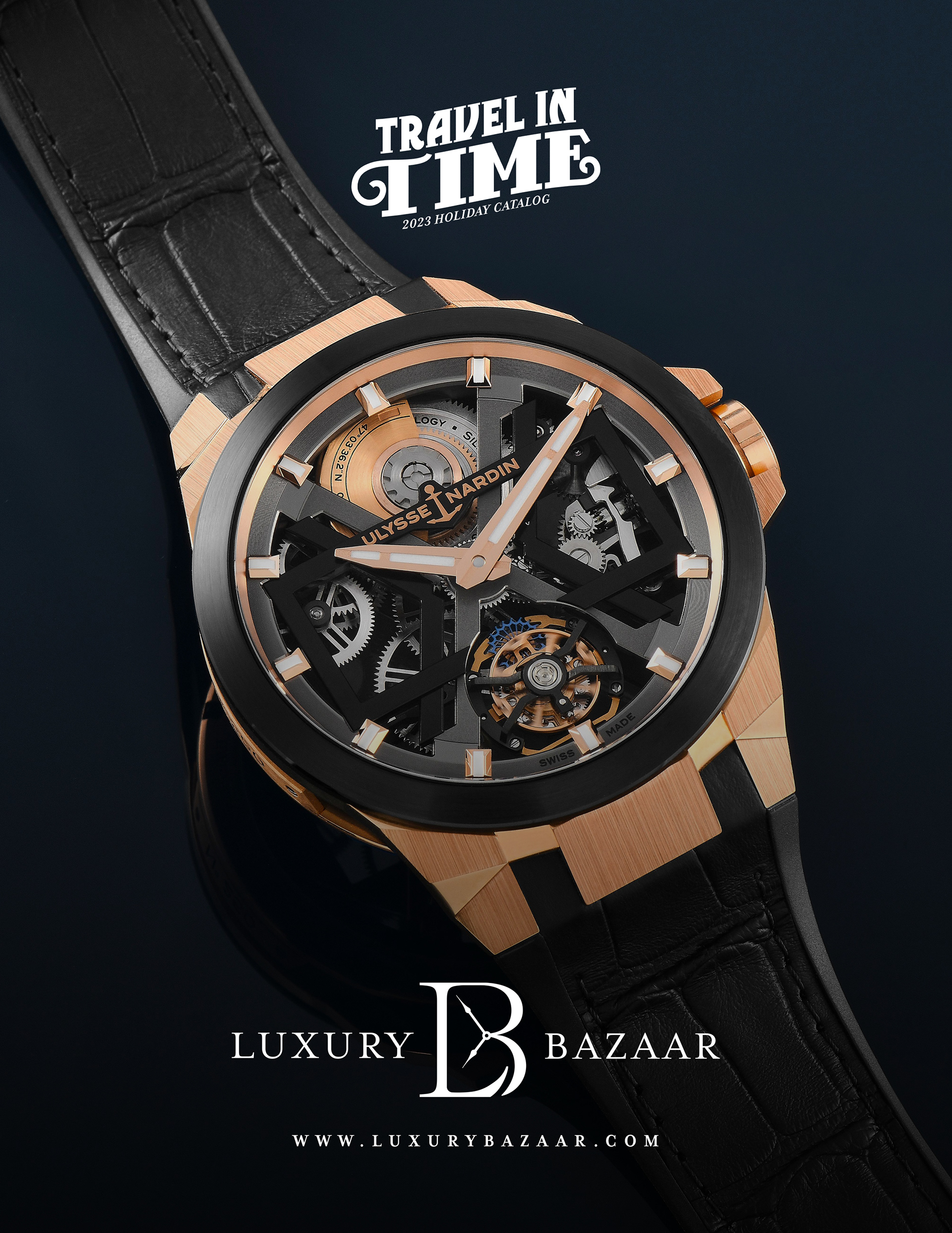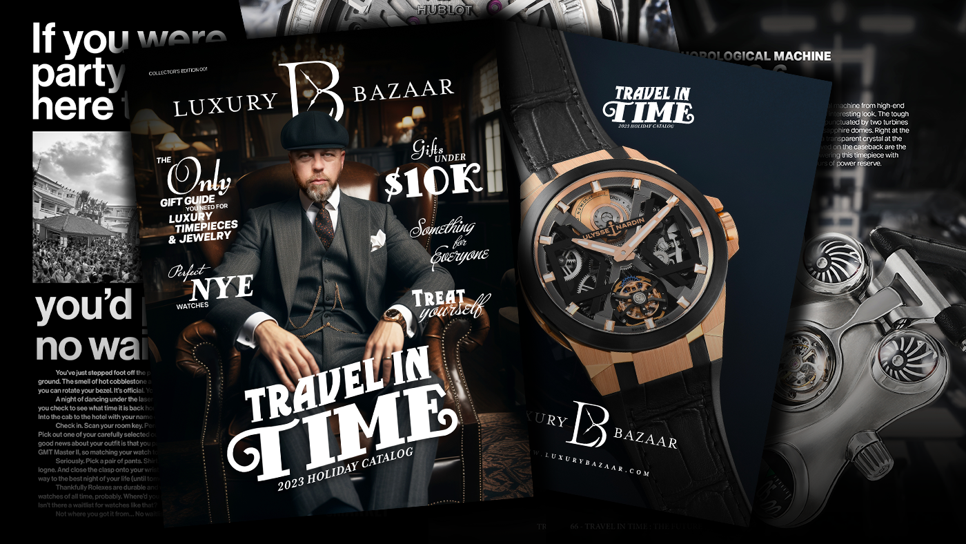 Luxury Bazaar Holiday Catalogue showcasing watches and jewelry on sale for the holiday season.