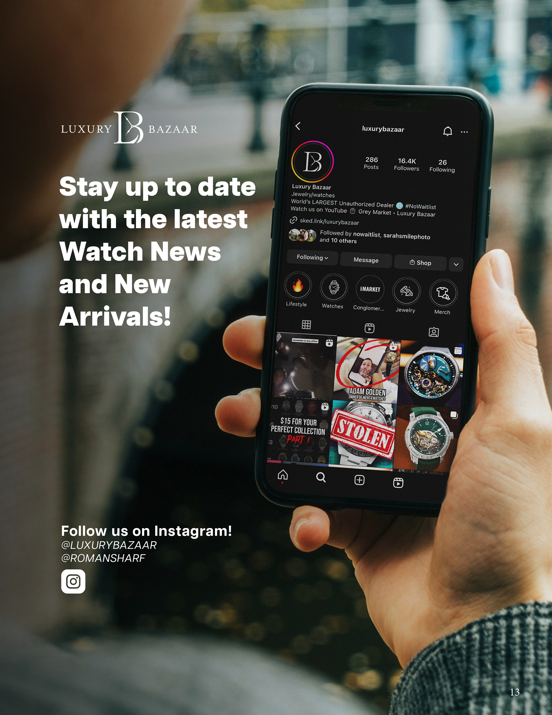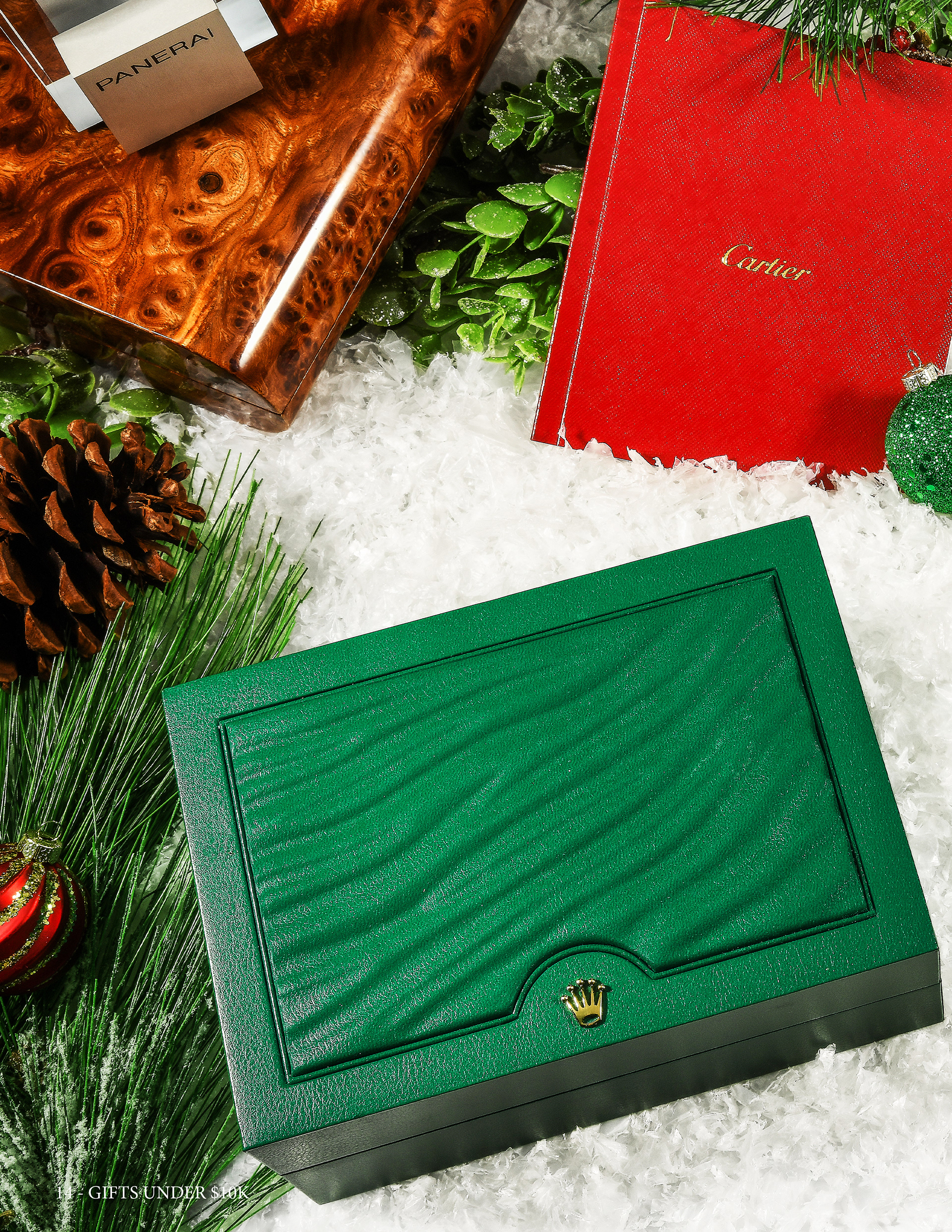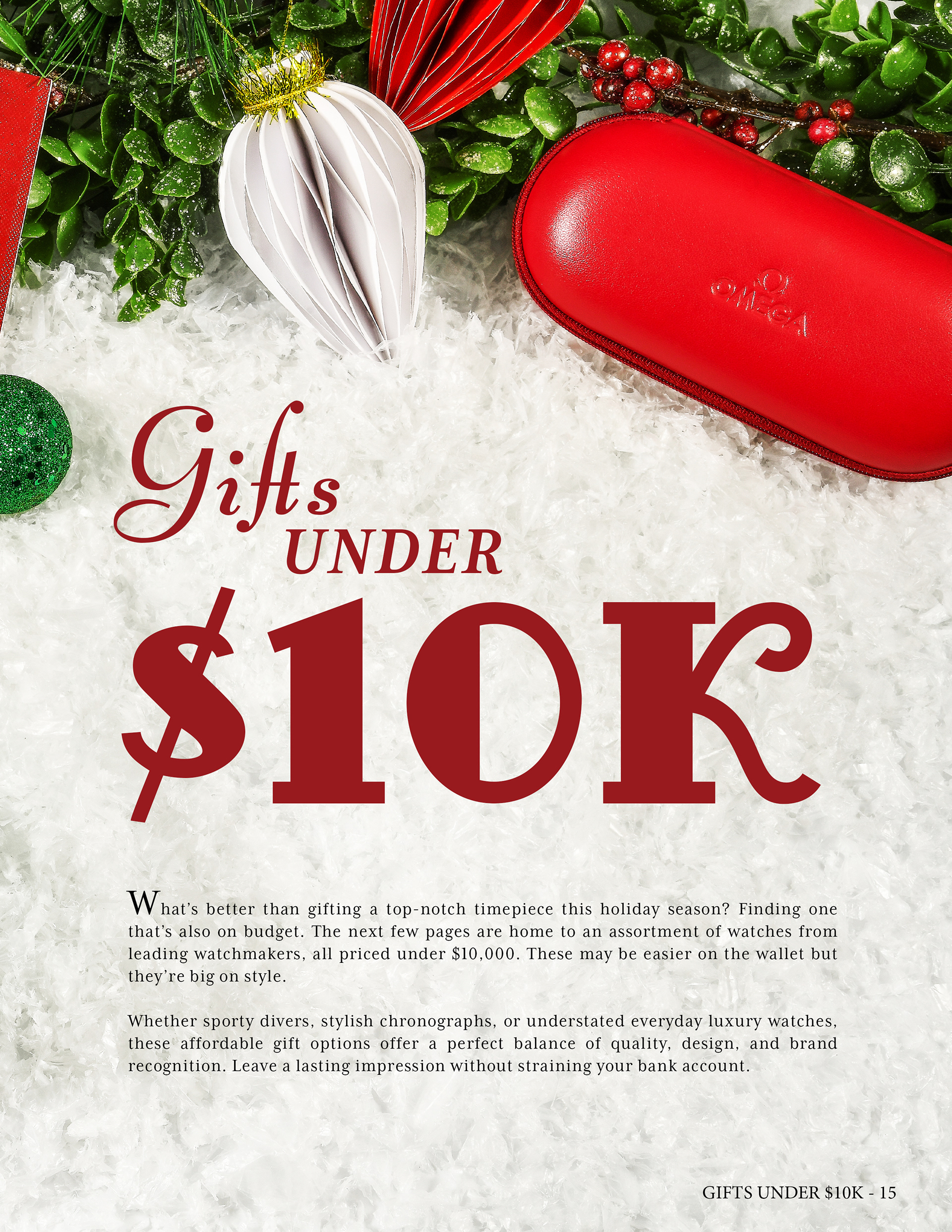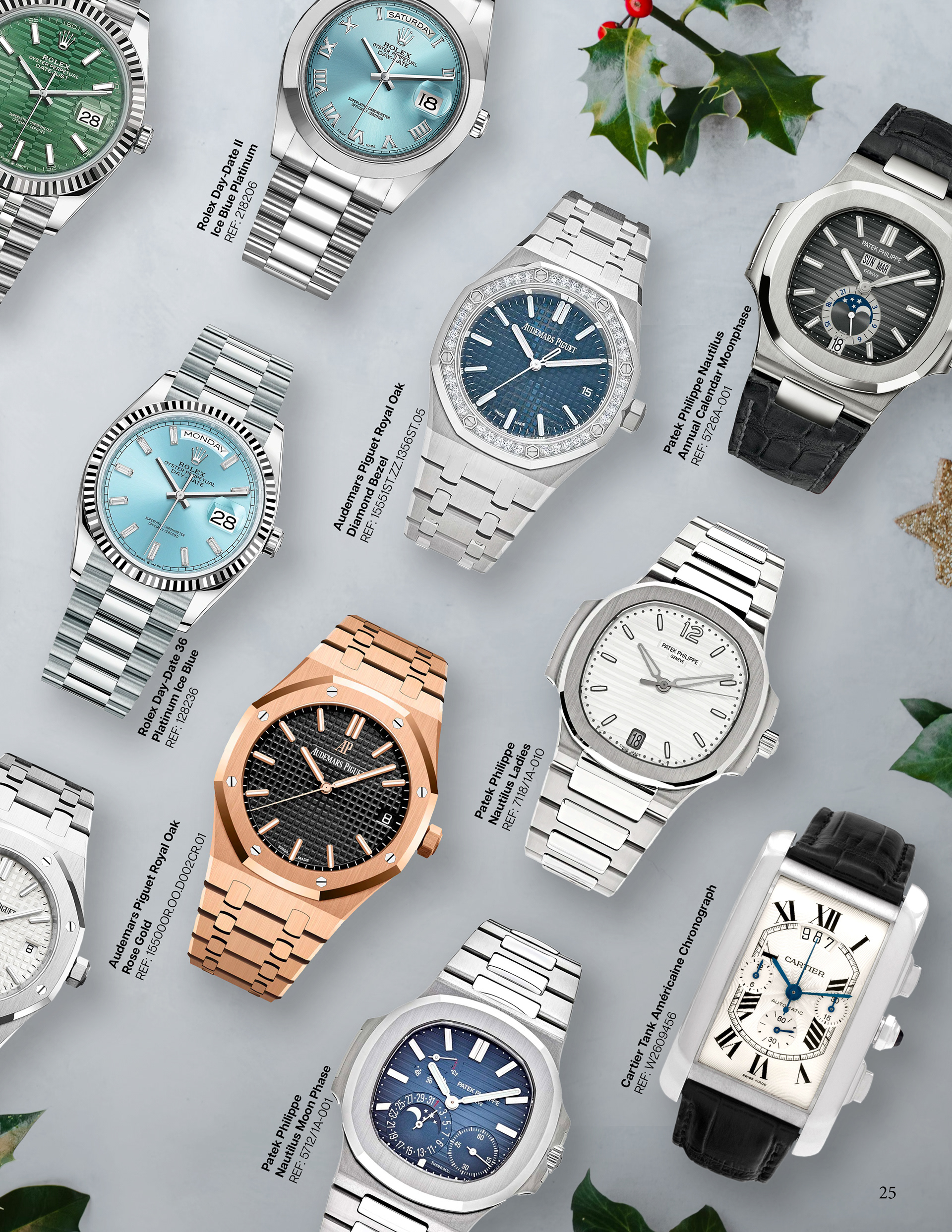 Luxury Bazaar Holiday Catalogue showcasing watches and jewelry on sale for the holiday season.